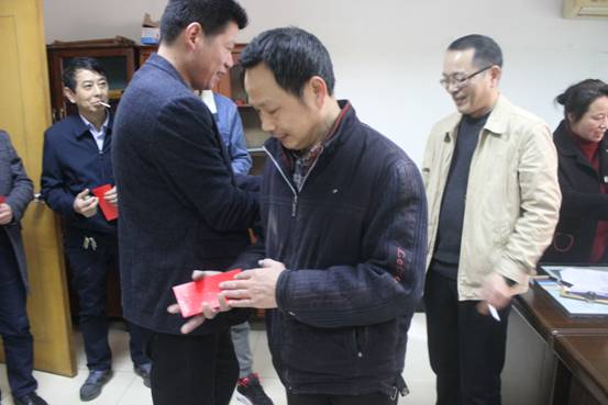 (春節(jié)開(kāi)工第一天,董事長(zhǎng)余棟梁代表公司為員工發(fā)開(kāi)工紅包)